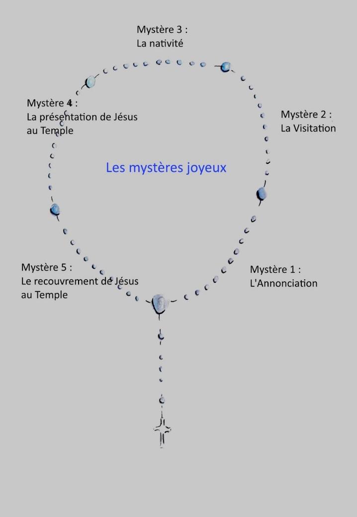 (Retrouvez la liste des autres mystères du Rosaire : les mystères lumineux , les mystères douloureux et les mystères glorieux ainsi que les fruits des mystères joyeux )