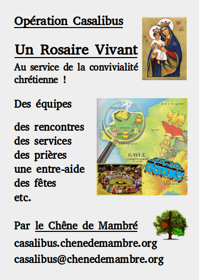 - vous rappeler le principe de l'opération Casalibus (prière du chapelet, dialogues, services, visitations, fiches, etc)