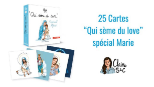 Merci à Claire S2C pour son illustration de la Vierge Marie au pied de la croix.  Retrouvez ses 25 cartes "Qui sème du love" spécial Marie en librairie.