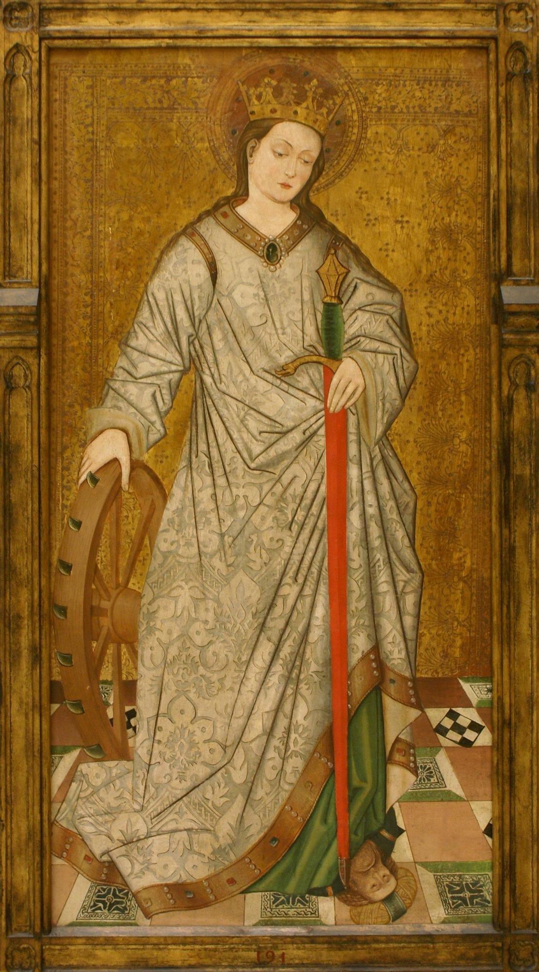 , surnommée “l’épouse du Christ”, est une martyre des premiers siècles. Refusant d’épouser l’empereur Maximin, tombé sous le charme de cette jeune chrétienne belle et audacieuse, elle fut écartelée et mourut le 25 novembre. Cette sainte, poète et philosophe, est la sainte patronne des jeunes femmes à marier